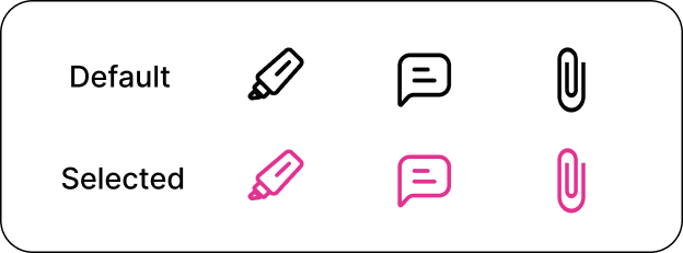 When entering Annotate mode (by clicking the pencil icon on the right), users have several options for providing feedback. They can draw directly on the images, pin comments to specific locations on the images, and attach contributions to specific points on the artwork.